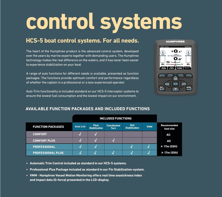 Humphree was founded by a team of hydrodynamic engineers and marine engineers, active in the field of high-speed marine propulsion and ship hydrodynamics since the early 1990s. The company was established in Sweden 2002 with the mission to provide and develop innovative products and services to the market. Packaging our knowhow in hydrodynamics, electronics and digital control onto products easy to use and install. We are 100% committed to delivering products and services that out perform all others. Our commitment enables boat builders to stay ahead of their competition, and provides the boating community the safest, most comfortable, boating experience possible.