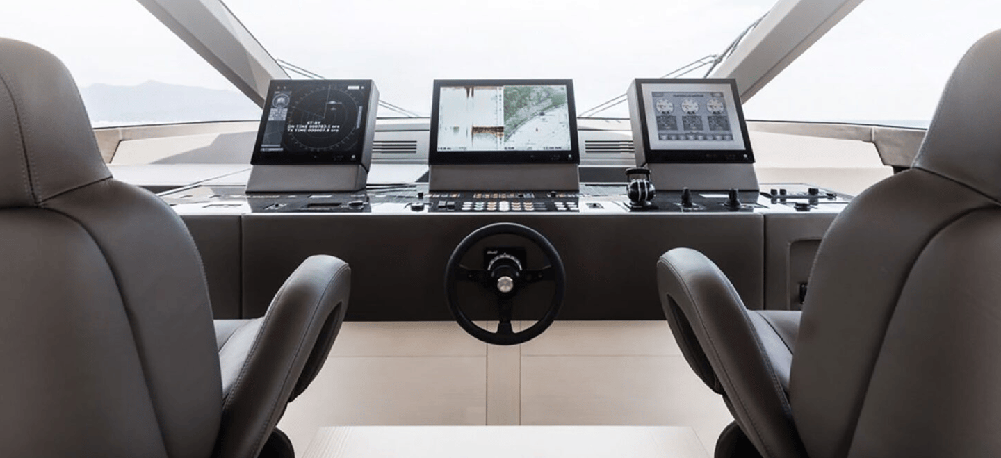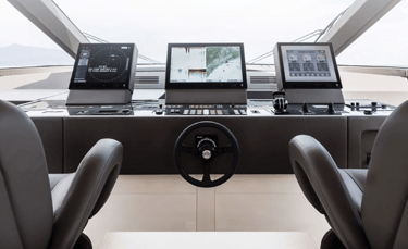 Best option for vessels with two or more jets for precision steering, bucket movement, and RPM control. Includes two Azimuth control heads, one for port and one for starboard control. Each can control 2 waterjets. Includes a touch screen display and a steering wheel, steering tiller. A command panel and/or joystick can be added on.